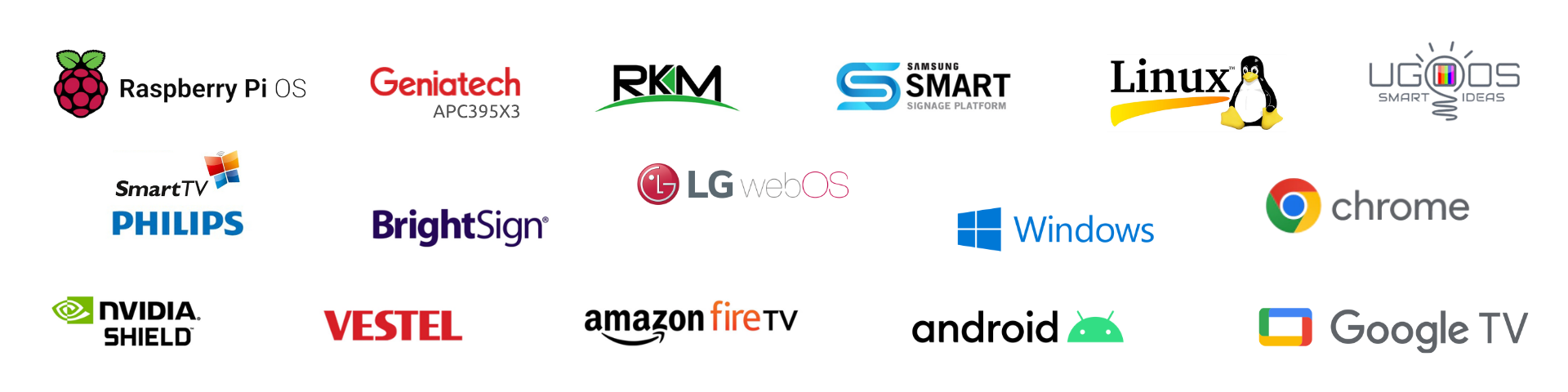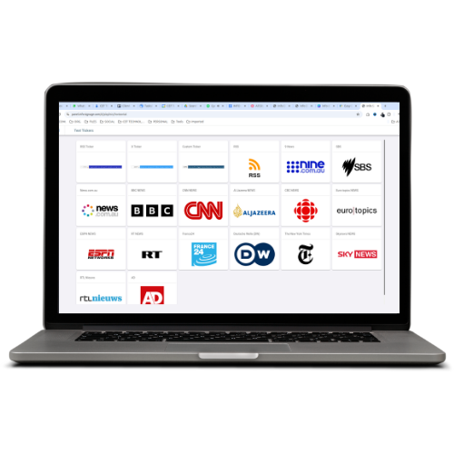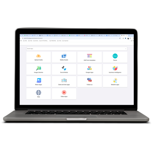 CDN supported | EPG | Music | RSS | Date & Time | Meeting Room | DS Menu | HDMI | IPTV | Google Data | Geekboard | Calendar | Google docs | Google Drive | HTML | Monday | MustHaveMenus | Notion | Pexels | Pixabay | Unsplash | PosterMyWall | PowerBI | Tableau | Weather | Youtube | News | Touchscreen.