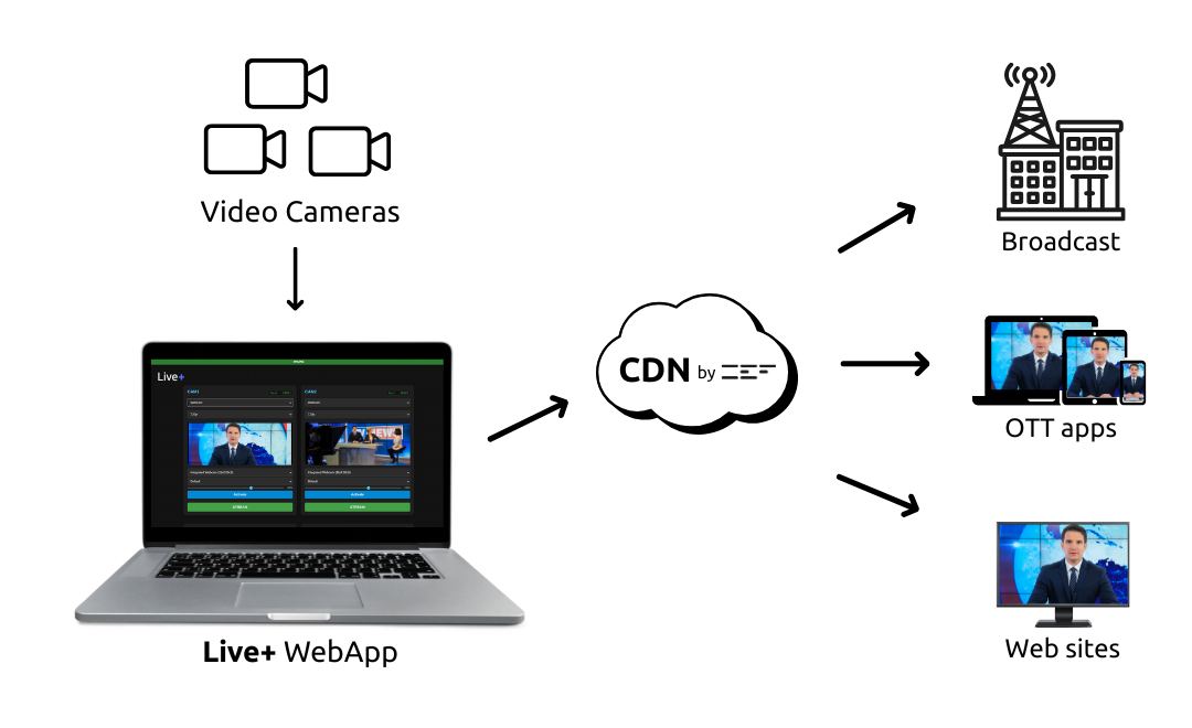 The Live Encoder by CEF simplifies professional broadcasting by replacing complex hardware with a streamlined, cloud-native workflow accessible through any standard web browser. By connecting cameras to a browser-based webapp, the service automatically transmits live feeds to the CEF global CDN, where the stream is instantly processed and prepared for high-capacity distribution. This flexible architecture allows users to start with small-scale real-time testing and seamlessly scale to reach thousands of concurrent viewers across diverse endpoints, including OTT apps, websites, broadcast stations, cable operators, and hospitality systems.